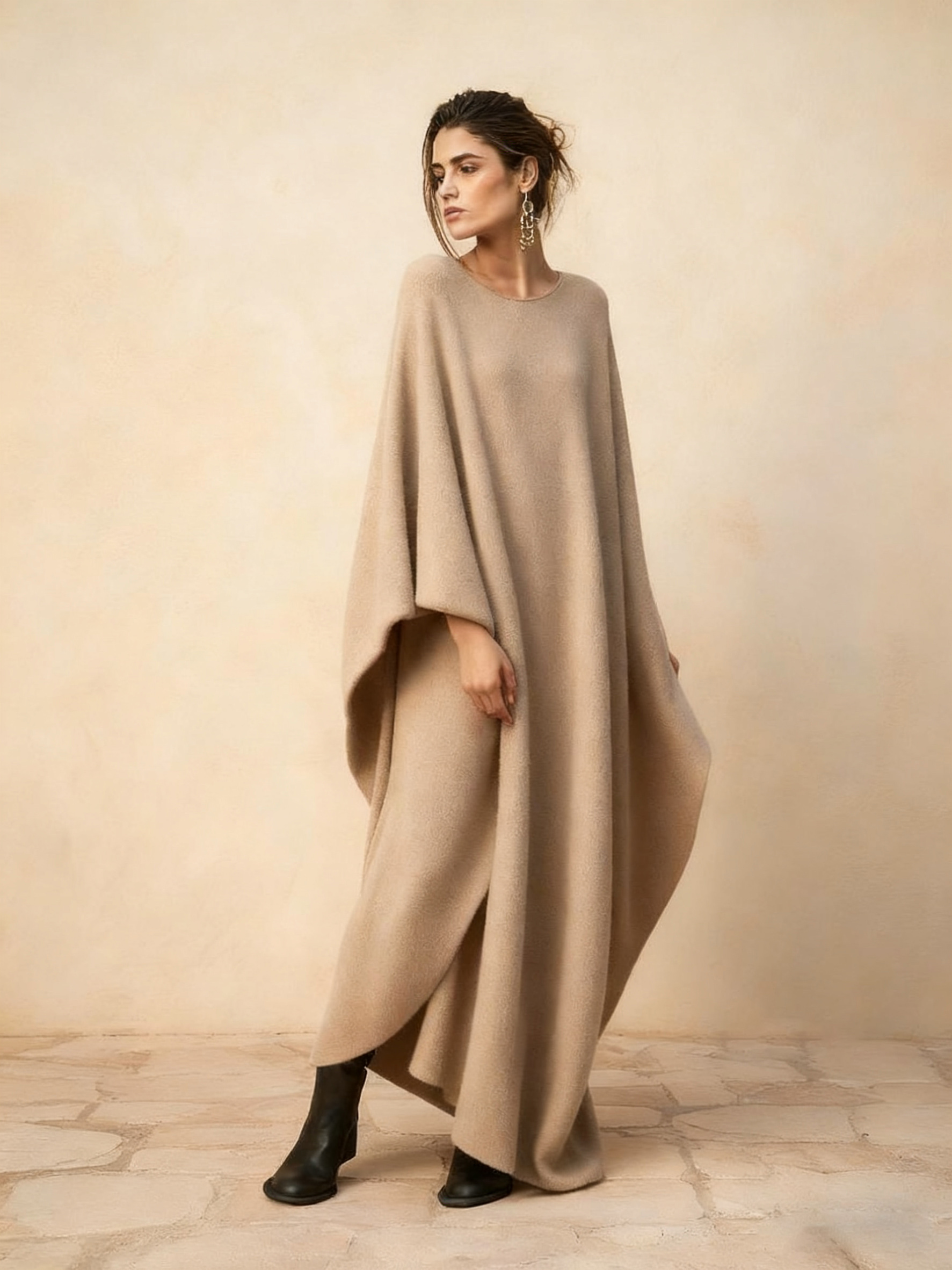 Fit: With a loose, A - line silhouette, this long poncho dress flatters all body types. The simple, elegant design allows for easy styling, pairing well with boots or heels for a chic outfit.