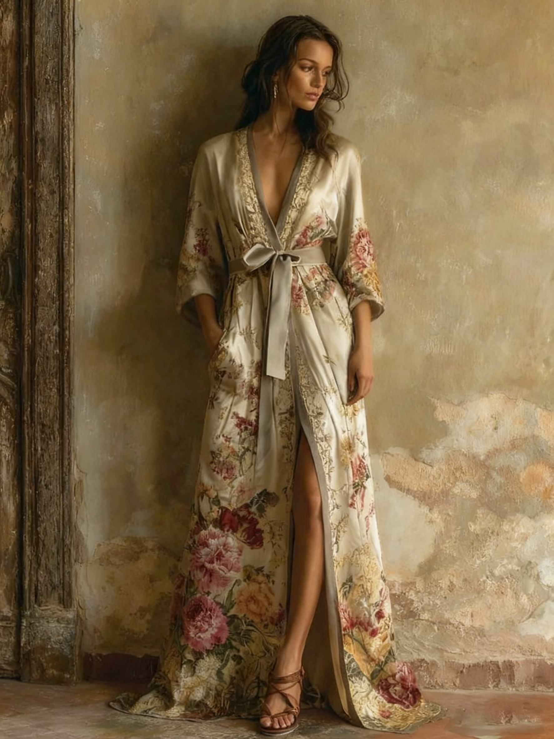 • Fit: Designed with a deep V - neck, three - quarter sleeves, and a self - tie belt at the waist. The high - slit skirt adds a hint of allure, and the loose fit ensures comfort and ease of movement.