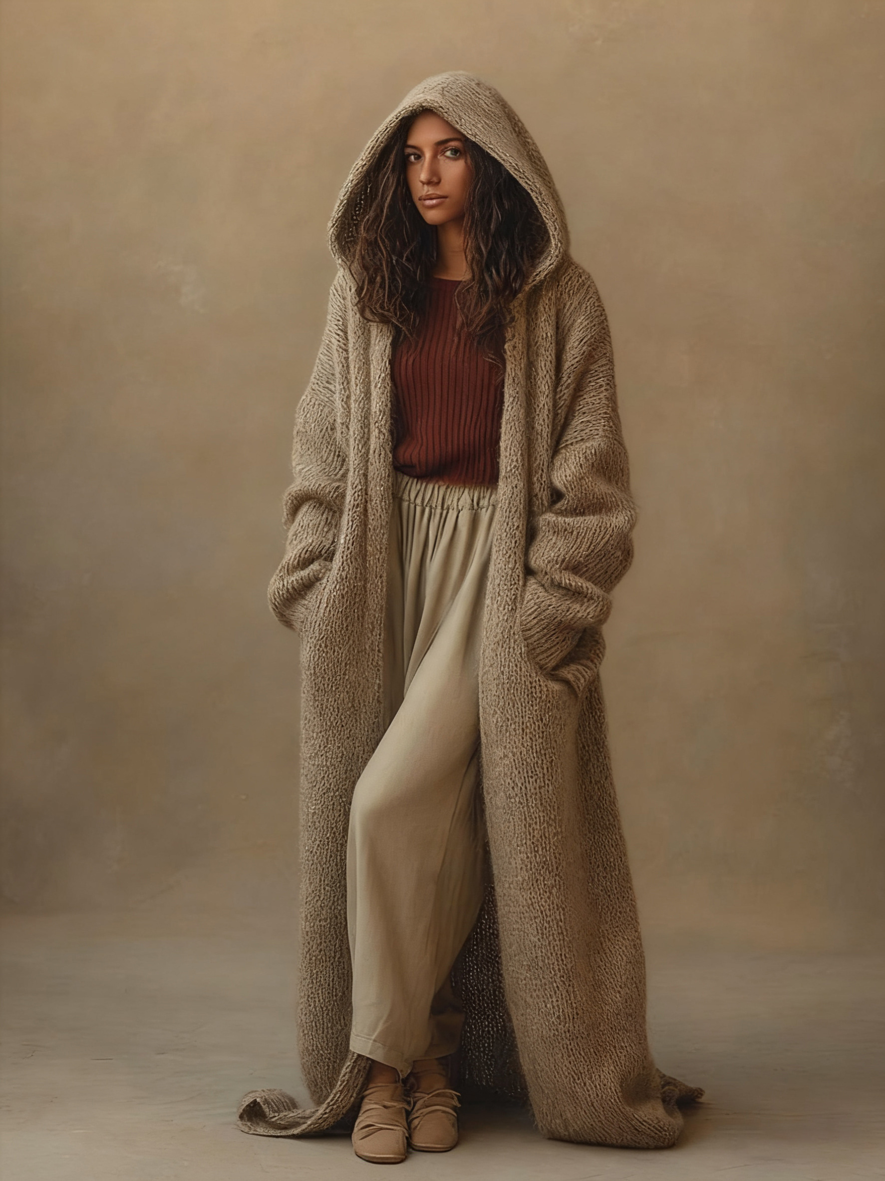 Fabric:  crafted from a premium cotton-blend knit, this hooded cardigan offers exceptional softness and breathability. The fabric provides lightweight insulation and a comfortable stretch, ensuring cozy comfort and ease of movement throughout the day.