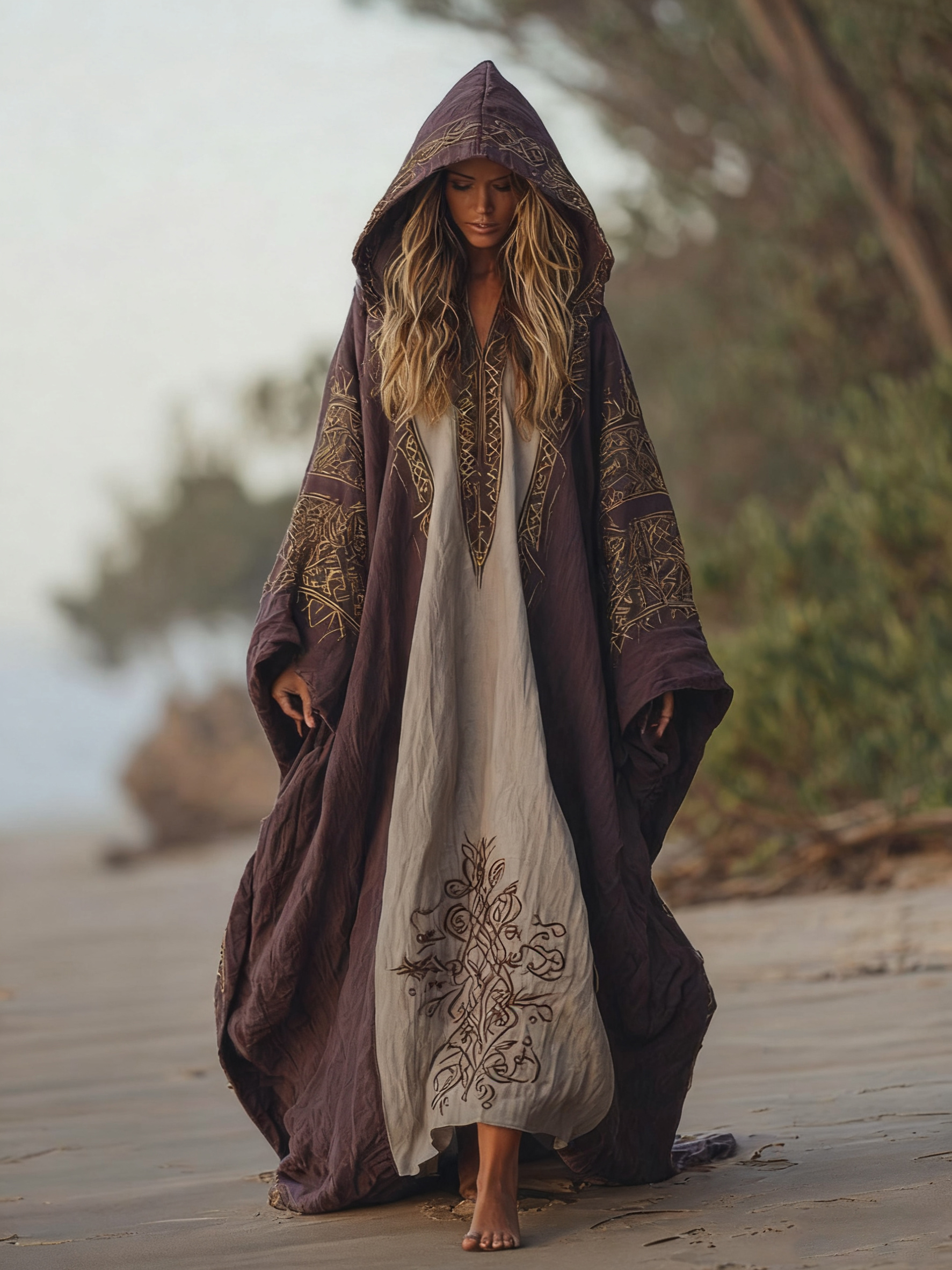 • Fit: Designed with a roomy, hooded silhouette and intricate sun - moon embroidery, this poncho has a bohemian - inspired look. It's perfect for throwing on over swimwear or casual wear for a chic beach vibe.