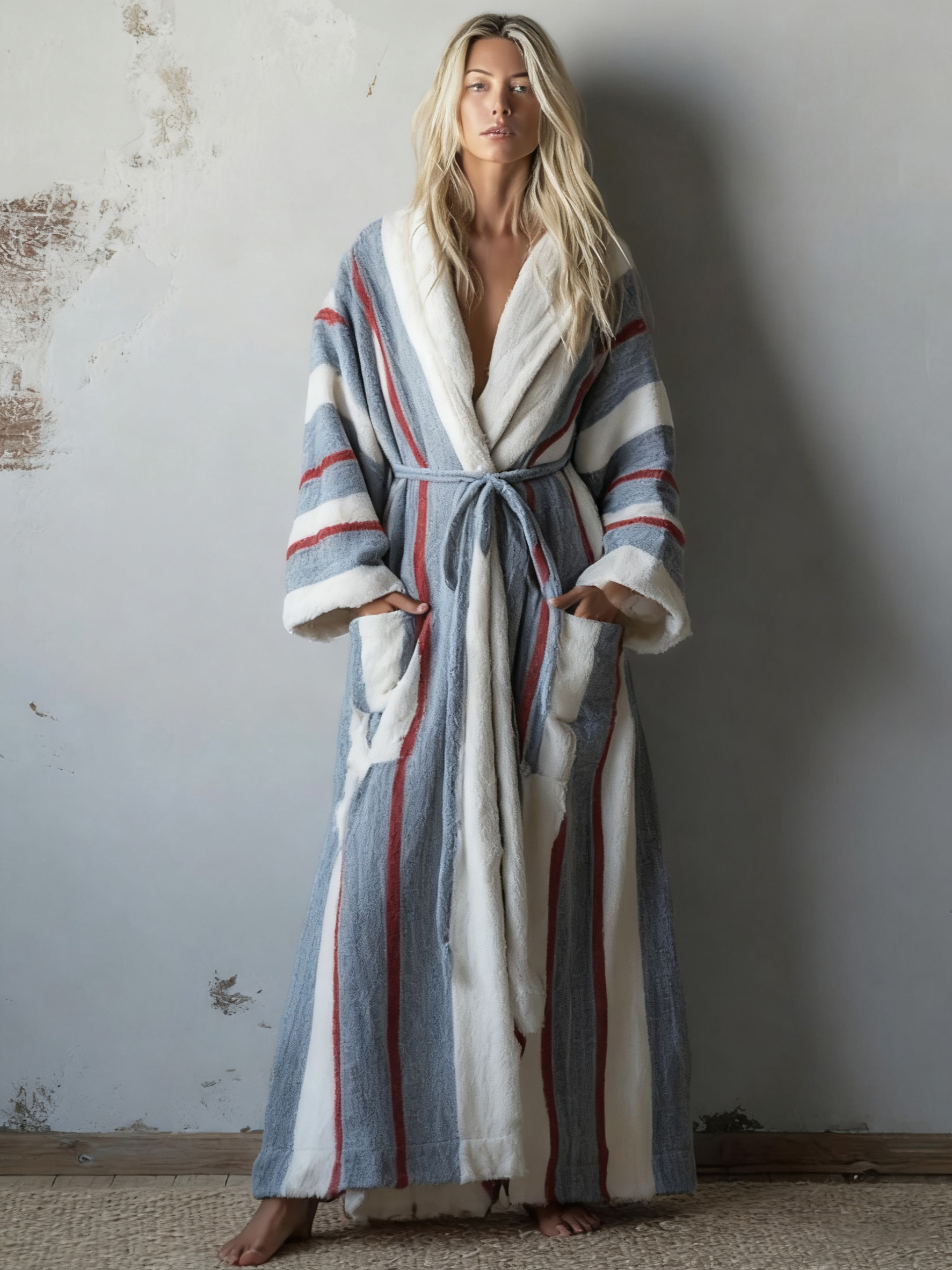 Fabric: Made from a plush, soft fleece fabric, this robe offers exceptional coziness. The fabric provides gentle warmth and a smooth touch, ensuring you feel wrapped in comfort whether lounging at home or stepping out.