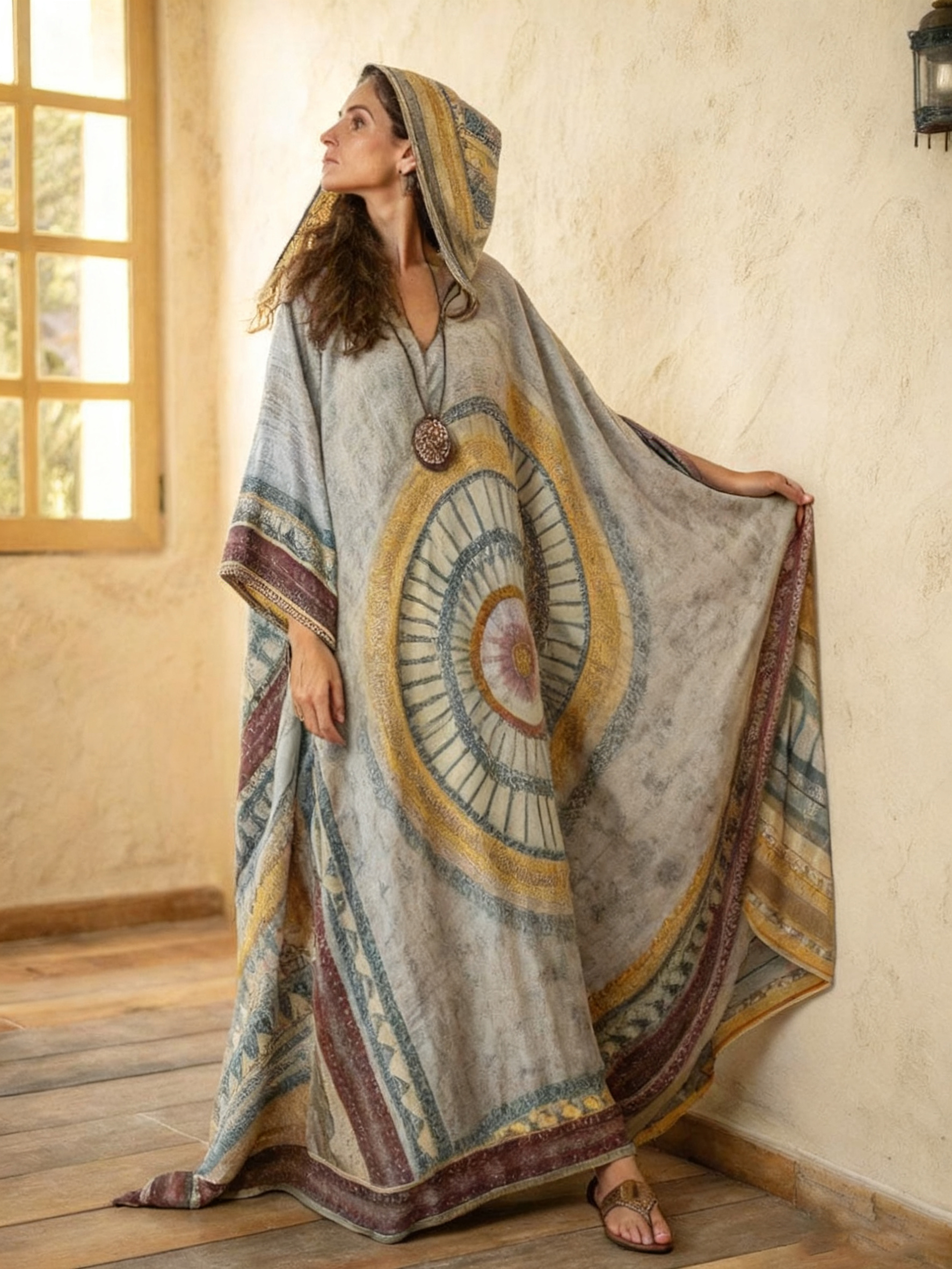 Fit: Loose hooded cloak version with a V - neck design that modifies the neck line. The wide body of the clothes provides sufficient activity space for the body. Whether relaxing at home or matching when going out, it can show a casual and free style.
