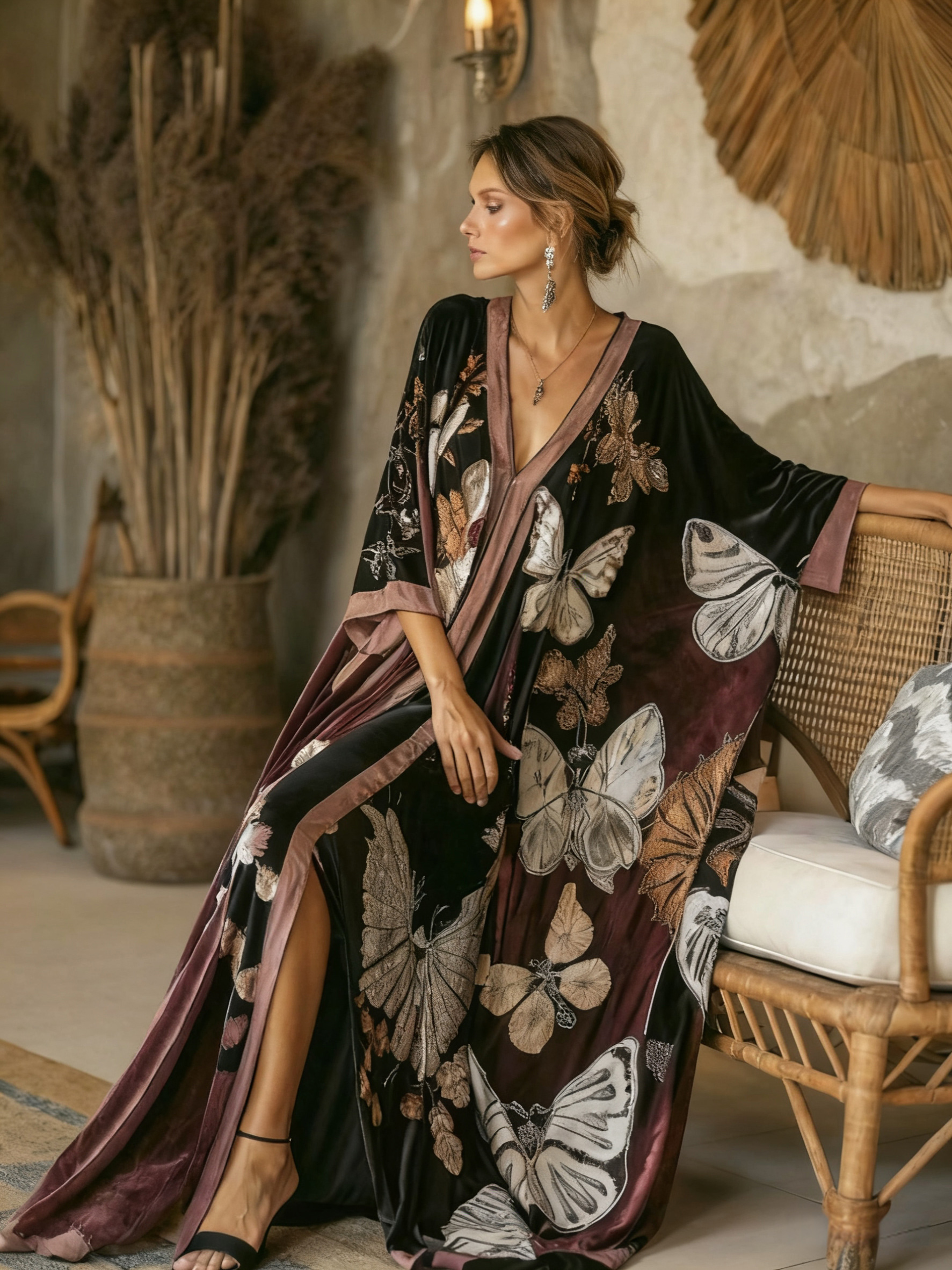 • Fit: Featuring a deep V - neck, loose sleeves, and a flowing silhouette, this kaftan provides a comfortable and elegant fit. The intricate butterfly print and contrasting trim add a touch of sophistication.