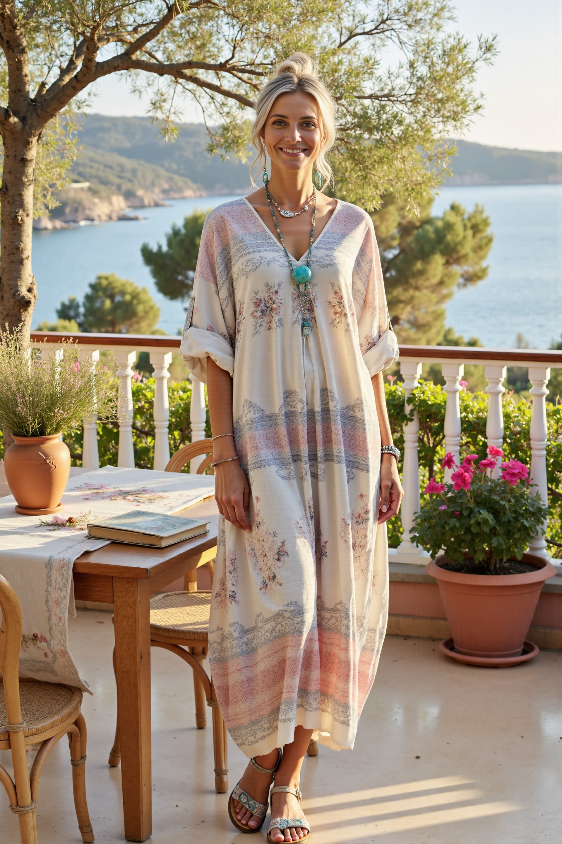 Women's Boho Print Casual Cotton&Line Maxi Dress